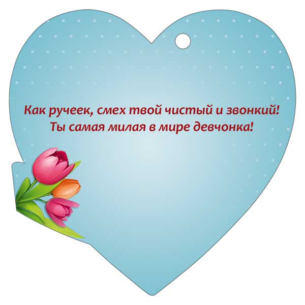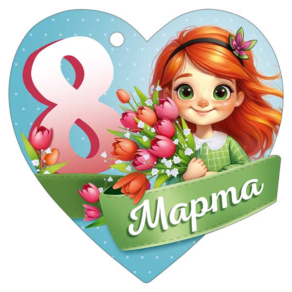 Бирка фигурной вырубки формата А7 предназначена для оформления подарков и цветочных композиций к 8 Марта, а также для использования в розничной и оптовой торговле в качестве универсального сопутствующего элемента. Изделие выполнено из плотного картона, обеспечивающего форму и устойчивость к сгибам при транспортировке и выкладке. Размер готовой бирки составляет 94 × 94 мм, что удобно для размещения на стандартных букетах, коробках и пакетах без перекрытия основной композиции. Фигурная форма в виде сердца с технологическим отверстием в верхней части позволяет быстро крепить бирку к ленте, шнуру или стяжке, что важно при поточном оформлении заказов и серийной упаковке. На лицевой стороне нанесен полноцветный рисунок с крупным обозначением «8 Марта» и изображением девочки с букетом тюльпанов; композиция хорошо читается на расстоянии, что облегчает визуальную навигацию на витрине и в складских остатках. Поверхность дополнительно обработана глянцевым УФ-лаком, повышающим износостойкость, устойчивость к истиранию и выцветанию, а также защищающим печать от кратковременного контакта с влагой при оформлении свежих цветов. Текстовое оформление уже встроено в дизайн, поэтому бирка готова к применению без дополнительной печати; при необходимости на оборотной стороне можно сделать краткую подпись от руки. Конструкция и материал рассчитаны на хранение в стопах без деформации, что удобно для логистики, фасовки и распределения по торговым точкам. В упаковке 20 штук, что позволяет формировать равномерные партии для сезонных предложений, наборов к 8 Марта и планируемых акций в магазинах подарков, флористических салонах и отделах праздничной упаковки.