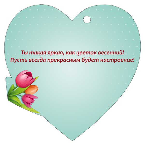 Бирка фигурной вырубки формата А7 предназначена для оформления подарков и цветочных композиций к 8 Марта в розничной и оптовой торговле. Изделие выполнено из плотного картона, обеспечивающего стабильную форму и устойчивость к деформации при транспортировке и выкладке. Готовый размер бирки составляет 94 × 94 мм, что удобно для размещения на стандартных букетах, коробках, пакетах и сувенирной продукции, не перекрывая основное изделие и оставаясь хорошо читаемым с расстояния. Фигурная форма сердца с технологическим отверстием в верхней части позволяет быстро крепить бирку на ленты, шнуры, флористическую проволоку или пластиковые держатели, что упрощает массовое оформление подарков в магазинах, цветочных салонах и на производстве подарочных наборов. На лицевой стороне размещен полноцветный печатный рисунок с крупной цифрой «8», надписью «Марта» и изображением девочки с букетом тюльпанов, что однозначно указывает на тематику Международного женского дня и позволяет использовать бирку как готовый поздравительный элемент без дополнительного текста. Отделка глянцевым УФ-лаком придает поверхности износостойкость, защищает изображение от истирания и частичного воздействия влаги, улучшает цветопередачу и делает картинку более контрастной при искусственном освещении торговых залов. Материал и покрытие подобраны с учетом потребностей оптовых пользователей: бирки выдерживают многократные касания при выборе товара, не расслаиваются и сохраняют внешний вид при длительном хранении в складских условиях. Конструкция удобна для упаковки стопками, не требует сложных условий транспортировки и может использоваться в широком ассортименте сопутствующих товаров к 8 Марта — от недорогих подарков до премиальных наборов. Наличие готового тематического текста сокращает время обслуживания покупателей и позволяет быстро формировать праздничные витрины. Количество в упаковке: 20.
