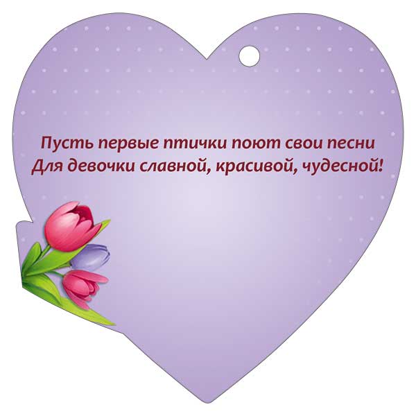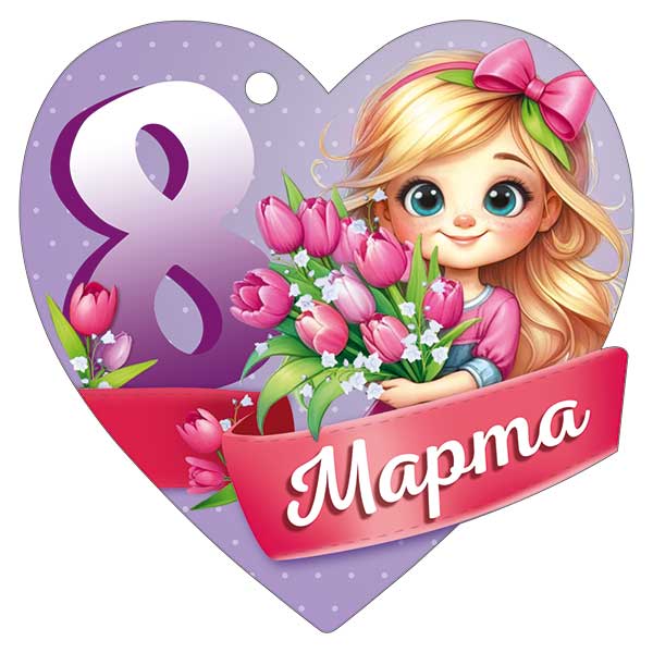 Бирка формата А7 выполнена из плотного картона и предназначена для оформления подарков к 8 Марта в розничных и оптовых партиях. Фигурная вырубка в форме сердца с точными габаритами 94×94 мм обеспечивает единообразие изделий в коробе и удобство при автоматизированной или ручной подготовке подарочных наборов. На лицевой стороне размещена полноцветная печать с тематическим изображением девочки с букетом тюльпанов и крупной надписью «8 Марта», что позволяет использовать бирку как готовый поздравительный элемент без дополнительного текста. В конструкции предусмотрено стандартное отверстие под ленточку или шнур, благодаря чему бирка быстро крепится к коробкам, пакетам, цветочным композициям и сувенирной продукции. Материал подобран с учетом устойчивости к сгибам и кратковременным нагрузкам при транспортировке и выкладке, поверхность сохраняет форму и не деформируется при аккуратном обращении. Наличие глянцевого УФ-лака повышает износостойкость лицевой стороны, защищает изображение от истирания и выцветания при экспонировании на витрине, придаёт печати более чёткий и контрастный вид, что важно при массовой выкладке. Бирка поставляется комплектами по 20 штук, что удобно для планирования запасов и расчёта себестоимости упаковки подарков в торговых сетях, цветочных мастерских и корпоративных отделах закупок. Изделие компактно размещается в стандартных лотках и коробах, не требует специальных условий хранения, может использоваться как самостоятельный носитель поздравительного текста или как дополнение к открытке, обеспечивая единый визуальный стиль оформления праздничных подарков.