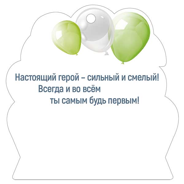 Бирка формата А7 предназначена для оформления подарков и сувенирной продукции к 23 февраля и ориентирована на использование в торговых сетях, подарочных мастерских и организациях, формирующих единый стиль поздравительной упаковки. Изделие изготовлено из плотного картона, что обеспечивает стабильную геометрию при транспортировке и хранении, а также достаточную жесткость при креплении к пакетам, коробкам, наборам или буклетам. Фигурная вырубка по контуру иллюстрации точно повторяет композицию с крупной надписью «23 февраля» и детским персонажем в военной тематике, что визуально выделяет бирку среди стандартных прямоугольных ярлыков и делает ее удобной для зонирования ассортимента к праздничной дате. Глянцевый УФ-лак используется в качестве финишной отделки, повышает стойкость печати к истиранию, влаге и случайным загрязнениям, сохраняет яркость красок при интенсивной выкладке на витрине и многократных тактильных контактах. Наличие готового печатного текста «Наш герой» позволяет применять бирку как самостоятельный носитель поздравления без дополнительной подписи, при этом свободные светлые зоны на лицевой стороне могут быть использованы для краткой надписи маркером или ручкой. Размеры готового изделия 94 × 95 мм обеспечивают хорошую читаемость текста и заметность на упаковке среднего и крупного формата, при этом бирка остается компактной и не препятствует укладке товара в коробки и транспортные короба. Конструктивно предусмотрено отверстие для подвеса, что упрощает крепление на лентах, шнурах, пластиковых стяжках или канцелярских скрепках, позволяя адаптировать бирку под существующие схемы упаковки на производстве и в розничных точках. В одной упаковке поставляется 20 одинаковых изделий, что удобно при планировании тиражей поздравительных наборов и позволяет оперативно пополнять выкладку к сезону продаж, сохраняя единый визуальный стиль оформления подарков для мужчин и мальчиков к Дню защитника Отечества.