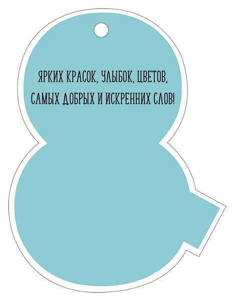 Бирка фигурной вырубки формата А7 изготовлена из плотного картона и предназначена для оформления подарков и товарных позиций к 8 Марта. Габариты готового изделия составляют 99 × 76 мм, что обеспечивает достаточную площадь для восприятия изображения и текста при компактном размере, удобном для транспортировки и складского хранения. Форма выполнена в виде цифры «8» с технологическим отверстием под ленту, шнур или тонкий шнурок, что упрощает крепление бирки к упаковке, корзинам, букетам и сувенирной продукции. Лицевой слой оформлен цветным изображением тюльпанов и ландышей на фоне стилизованной восьмёрки, дополнен текстовым элементом «8 Марта», что позволяет использовать изделие как готовый поздравительный ярлык без дополнительной персонализации. Поверхность имеет глянцевую отделку с применением УФ-лака, за счёт чего повышается износостойкость, стойкость к истиранию и выцветанию, а также сохраняется чёткость печати при контакте с руками и упаковочными материалами. Плотный картон удерживает форму при стандартных нагрузках, не деформируется при подвешивании и подходит для применения в розничных торговых точках, цветочных салонах и сервисах упаковки подарков. Компактный размер партии 20 позволяет планировать закупки с учётом сезонного спроса, равномерно распределять бирки по торговым точкам и использовать их в комбинированных наборах праздничного оформления. Изделие удобно в хранении: бирки можно размещать стопками или подвешивать на крючки, что облегчает инвентаризацию и выкладку. Для конечного пользователя бирка служит готовым элементом оформления подарка к Международному женскому дню, подходит для крепления к коробкам, пакетам, цветочным композициям и корпоративным подарочным наборам, обеспечивая единый визуальный стиль при массовой подготовке поздравлений.
