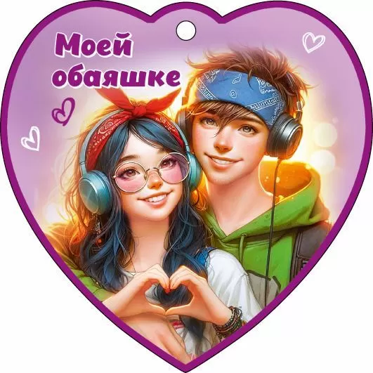 Бирка-сердечко «Моей обаяшке» – это стильное дополнение к любому подарку и милый знак внимания в честь Дня Святого Валентина. Очаровательный дизайн в модном аниме-стиле порадует всех! На сердечке изображена пара влюбленных, которые обнимаются и смотрят в камеру, делая совместно фото. Девушка руками показывает жест «сердце». На обратной стороне мини-открыточки находится текст с теплыми и приятными словами. Качественные материалы производства и печати обеспечивают изделию прочность и долговечность. Дарите подарки с радостью!