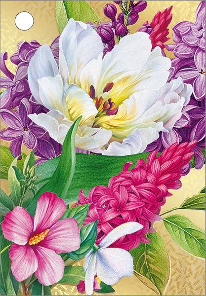 Бирка формата А7 из плотного картона предназначена для использования в торговых и складских системах, а также при оформлении подарков и сувенирной продукции. Готовое изделие имеет размеры 79 × 55 мм, что обеспечивает удобство размещения на стандартных упаковках, коробках, пакетах и цветочных композициях. На лицевой стороне расположен полноцветный рисунок с крупными цветочными элементами на золотистом фоне, что делает бирку подходящей для сезонных и праздничных коллекций, а также для ассортимента с женской или подарочной тематикой. Поверхность дополнительно оформлена золотой фольгой и глянцевым УФ-лаком, благодаря чему изображение приобретает выраженный декоративный эффект, устойчиво к истиранию и сохраняет внешний вид при интенсивной эксплуатации, в том числе при транспортировке и выкладке товара. Обратная сторона оставлена без надписей и может использоваться для проставления цен, артикулов, краткой информации о товаре, логотипа компании или персональных поздравительных надписей; при этом картон подходит для нанесения информации шариковой и гелевой ручкой, маркером или штампом. В верхней части предусмотрено отверстие под ленту, шпагат или пластиковый хомут, что упрощает крепление к упаковке и позволяет быстро интегрировать бирку в существующую систему маркировки. Количество в упаковке — 20, что удобно для планирования мелкооптовых и розничных закупок, формирования наборов под конкретные проекты и равномерного распределения по торговым точкам. Компактный формат облегчает хранение и транспортировку: пачки занимают минимум места на складе, не деформируются при стандартных условиях перевозки и могут использоваться как расходный материал в течение длительного периода, сохраняя стабильное качество печати и отделки.