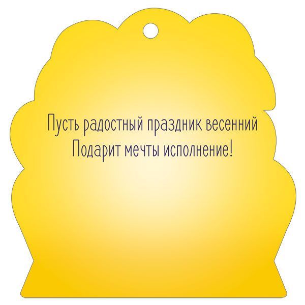 Бирка фигурной вырубки формата А7 изготовлена из плотного картона и предназначена для оформления подарков и цветочных композиций к 8 Марта, а также для использования в торговых выкладках сезонного ассортимента. Габариты готового изделия 94 × 94 мм обеспечивают хорошую читаемость текста и заметность на упаковке при сохранении компактности для транспортировки и хранения в коробах и лотках. На лицевой стороне размещена яркая композиция с крупной цифрой «8», букетом весенних цветов, воздушными шарами и текстом «8 Марта», что позволяет использовать бирку как готовый поздравительный элемент без дополнительной печати. Двустороннее изображение делает изделие визуально привлекательным с любой стороны, что важно при оформлении витрин, подвесных конструкций и подарочных корзин. Картонная основа подобрана таким образом, чтобы сохранять форму при стандартных нагрузках, не деформироваться при кратковременном контакте с влагой и выдерживать транспортировку в крупной оптовой поставке. Наличие глянцевого УФ-лака повышает износостойкость поверхности, защищает краску от истирания и выгорания, облегчает протирку от загрязнений и придает изображению выраженный глянец, что особенно актуально при экспонировании под ярким торговым освещением. Фигурная вырубка повторяет контуры композиции, за счет чего бирка аккуратно смотрится на упаковке любой формы — от стандартных коробок до нестандартных подарочных наборов и цветочных упаковок. Изделие поставляется в количестве 20, что удобно для планирования сезонных закупок, формирования розничного ассортимента и комплектования подарочных наборов сериями. Бирка подходит для крепления к лентам, веревкам, скотчу или клеевым точкам, может использоваться как самостоятельный декоративный элемент либо в составе комплексного оформления праздничных акций и витрин.