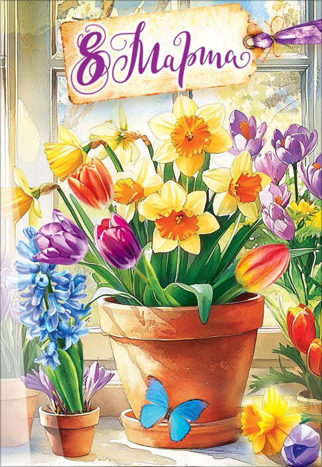 Бирка формата А8 предназначена для оформления подарков и цветочных композиций к 8 Марта и рассчитана на использование в розничной и оптовой торговле. Изделие изготовлено из плотного картона, обеспечивающего достаточную жесткость, устойчивость к изгибам и сохранение формы при транспортировке и хранении в стандартных складских условиях. Лицевая сторона оформлена полноцветным изображением весеннего букета в глиняных горшках с тюльпанами, нарциссами и другими цветами на фоне окна, в верхней части композиции размещена надпись «8 Марта», что позволяет использовать бирку как готовый праздничный элемент без дополнительного дизайна. Поверхность защищена глянцевым УФ-лаком, который повышает износостойкость, устойчивость к истиранию и выцветанию, сохраняет яркость красок при частом контакте с руками и при выкладке на витринах под осветительными приборами. Обратная сторона не содержит текста и подходит для проставления цены, артикулов, штрихкодов, краткой информации о товаре или личных поздравительных надписей; возможна работа как с ручными, так и с автоматическими маркерами и штампами, что удобно при поточном оформлении заказов и серийной упаковке. Габариты готового изделия 77 × 54 мм обеспечивают хорошую читаемость надписей и заметность на упаковке, при этом бирка не закрывает сам подарок и не затрудняет групповую укладку в транспортные короба. В одной упаковке 20 единиц, что облегчает планирование оптовых закупок, учет остатков и формирование ассортимента к праздничному сезону. Компактный формат и плоская форма позволяют хранить бирки стопками без риска деформации, удобно комплектовать их с лентами, пакетами и коробками, использовать в цветочных мастерских, сувенирных магазинах, интернет‑заказах и корпоративных подарочных наборах.