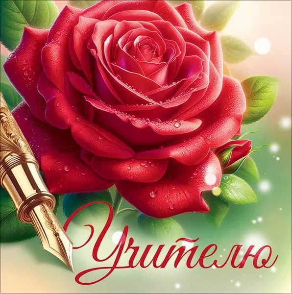 Бирка «Учителю» (красная роза, перо)