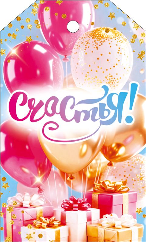 Бирка «Счастья!» (шары и подарки)