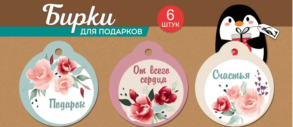 Набор чудесных подарочных бирок для самых любимых праздников и важных поводов. В комплект входят 6 элегантных карточек: 3 вида дизайна в двух экземплярах. Бирки станут прекрасным дополнением к презенту или букету цветов. Такой изысканный штрих сделает любой подарок доведенным до совершенства! Карточки украшены очаровательными цветочными рисунками. Бирки идеально подойдут для 8 Марта, свадьбы, дня матери или дня рождения. На каждой мини-открытке можно написать имя адресата и несколько теплых пожеланий. Сверху есть небольшое отверстие под декоративный шнурок или ленточку. Материал — плотный картон высокого качества. Размеры одной бирки — 55х60 мм, удобный формат — А8. На нашем сайте можно заказать бирки для подарков оптом.