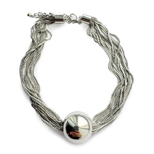 Браслет металлический предназначен для розничной продажи и формирования ассортимента в магазинах бижутерии, сувенирных и fashion‑отделах. Изделие выполнено из металла с гладкой полированной поверхностью без дополнительной отделки и надписей, что упрощает сочетание с различными стилями одежды и позволяет использовать браслет как базовую модель в коллекции. Конструкция состоит из нескольких тонких металлических цепочек, собранных в единый жгут, и крупного центрального элемента сферической формы, который служит акцентом и одновременно распределяет нагрузку, снижая риск деформации при регулярной эксплуатации. Длина готового изделия 240 мм обеспечивает посадку на большинство размеров запястья; ширина 15 мм формирует заметный, но не громоздкий силуэт, удобный для повседневного ношения и комплектования с часами или другими украшениями. Металл устойчив к механическим воздействиям, сохраняет форму при многократном застёгивании и расстёгивании, что важно для оптовых закупок в сегменте недорогой бижутерии с высокой оборачиваемостью. Конфигурация браслета удобна для складского хранения: изделие не требует сложной упаковки, укладывается в стандартный плоский пакет с клеевым клапаном формата А4 и занимает минимум места при транспортировке и выкладке. Отсутствие декоративных надписей делает модель универсальной для разных целевых аудиторий и возрастных групп, а также позволяет использовать браслет как самостоятельный аксессуар или дополнение к подарочным наборам. В одной упаковке 1.