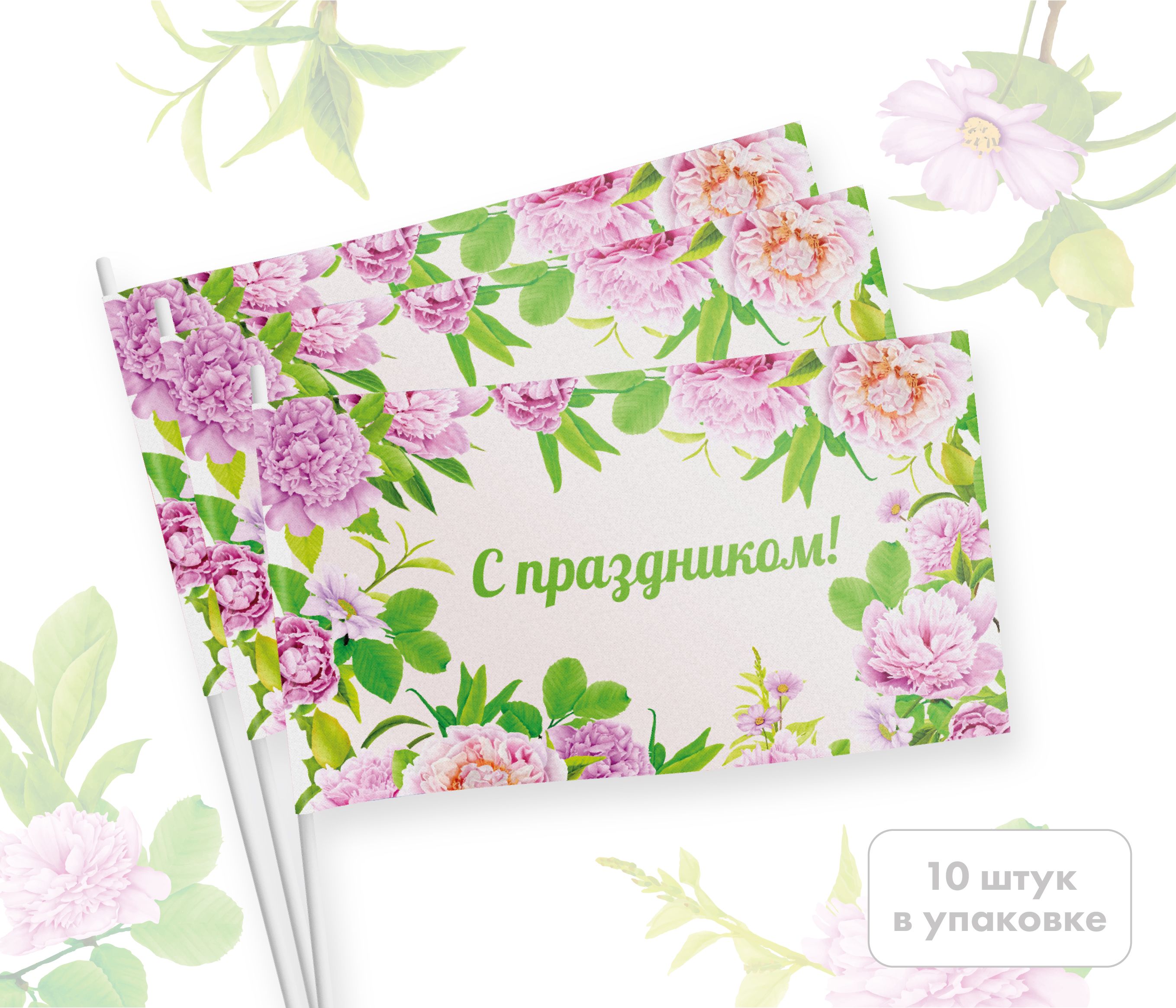 Набор флажков «С праздником! Нежные пионы»
