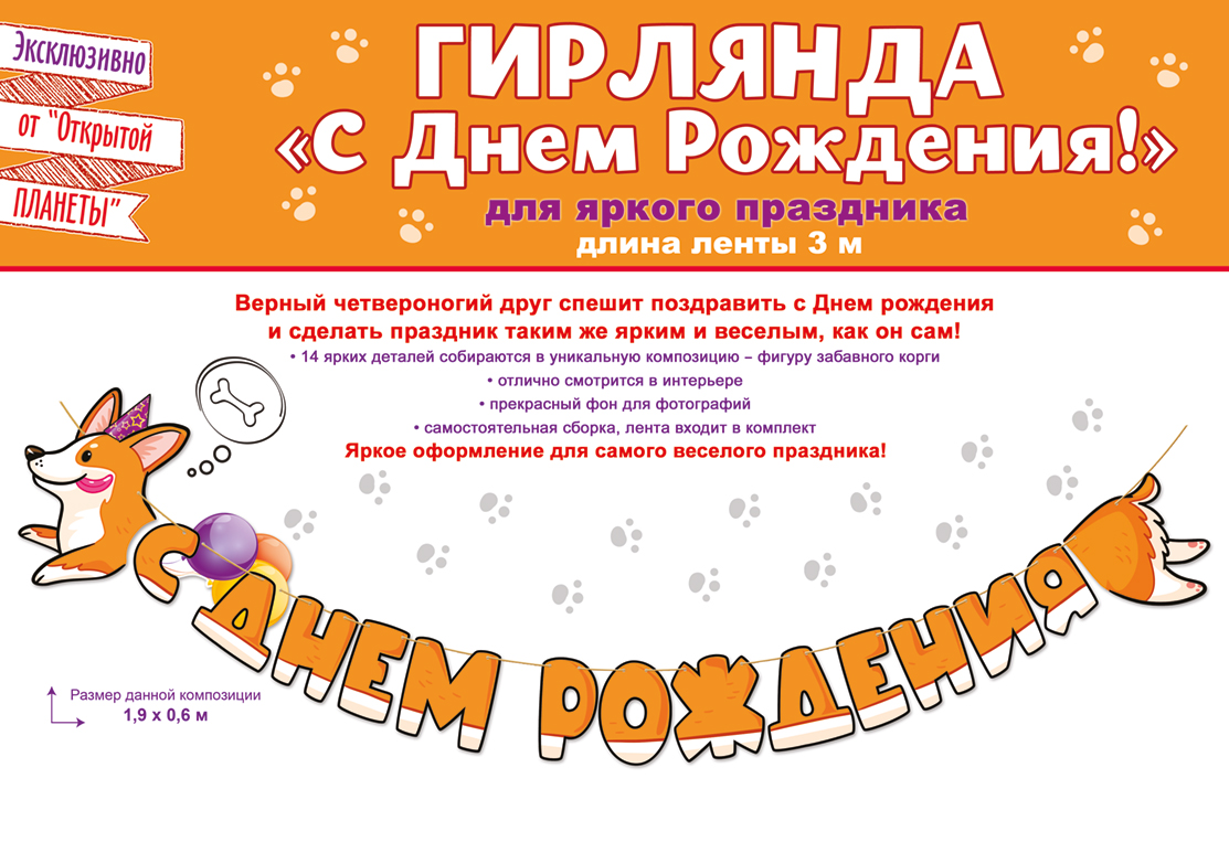 Гирлянда "С Днем рождения!" Корги