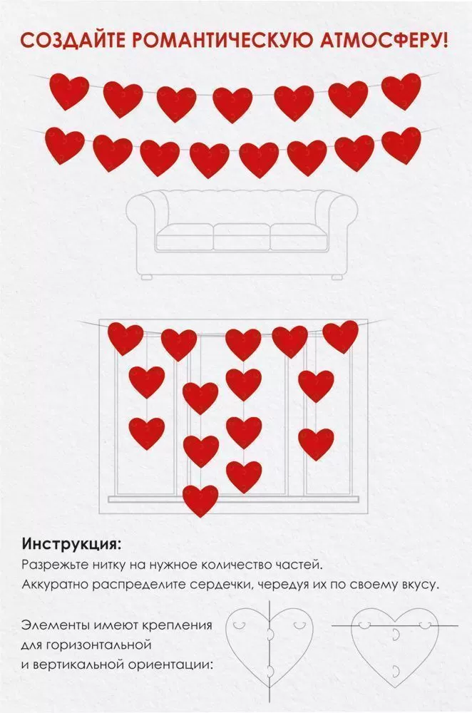 Дизайн растяжек универсален – элементы можно закрепить на лёгкой нити как вертикально, так и горизонтально, разместить их любой стороной, в любом порядке и количестве. Создайте свою уникальную композицию с помощью наших оформительских наборов!
