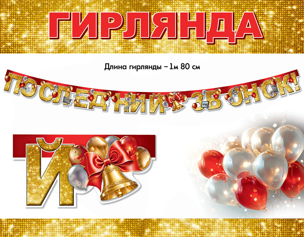 Гирлянда картонная с фигурной вырубкой предназначена для оформления помещений к празднику «Последний звонок» и рассчитана на интенсивное использование в учебных заведениях и организациях, проводящих выпускные мероприятия. Изделие состоит из отдельных букв и декоративных элементов, собранных на прочной основе типа пикколо и закреплённых на подложке, что обеспечивает устойчивую форму, ровное натяжение и удобство монтажа на стенах, досках, сценических конструкциях и в витринах. Длина готового изделия составляет 1800 мм, ширина по максимальному элементу — 136 мм, что позволяет планировать размещение в пространстве и комбинировать гирлянду с другими декоративными позициями ассортимента. Основной материал — плотный картон, достаточный по жёсткости для сохранения геометрии при многократном использовании, транспортировке и хранении в стопах или коробах. Поверхность оформлена полноцветной печатью с глянцевым УФ-лаком, который повышает износостойкость лицевого слоя, устойчивость к выцветанию под воздействием освещения и истиранию при соприкосновении с другими элементами декора, а также облегчает сухую очистку от пыли. Фигурная вырубка подчёркивает контуры букв и декоративных изображений, что делает надпись визуально читаемой с расстояния, удобной для использования в актовых залах и длинных коридорах. Конструкция адаптирована для стандартных сценариев эксплуатации: гирлянда легко крепится на скотч, кнопки, нить или подвесные системы, не требует дополнительной подготовки и может быть быстро демонтирована без повреждения основы при аккуратном обращении. Формат длины 1,5–1,99 м оптимален для точечного оформления входных зон, классных кабинетов, фотозон и торговых выкладок сезонного ассортимента. В упаковке — 1 изделие, компактная укладка снижает риски деформации при оптовой поставке, упрощает хранение на складе и выкладку в розничном зале. Дизайн с тематическими колокольчиками и шарами ориентирован на использование именно в период проведения «Последнего звонка», что позволяет формировать целевые подборки праздничной печатной продукции и планировать закупки к учебному сезону.
