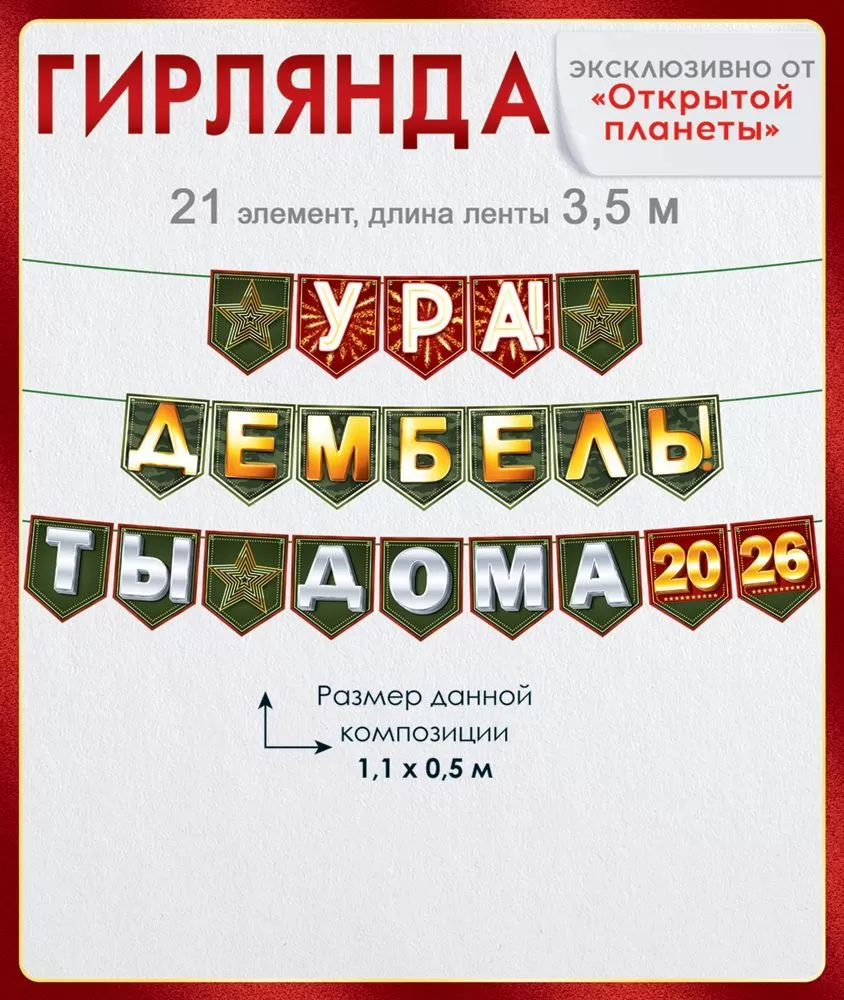 Гирлянда « Ура, дембель! Ты дома!» на флажках