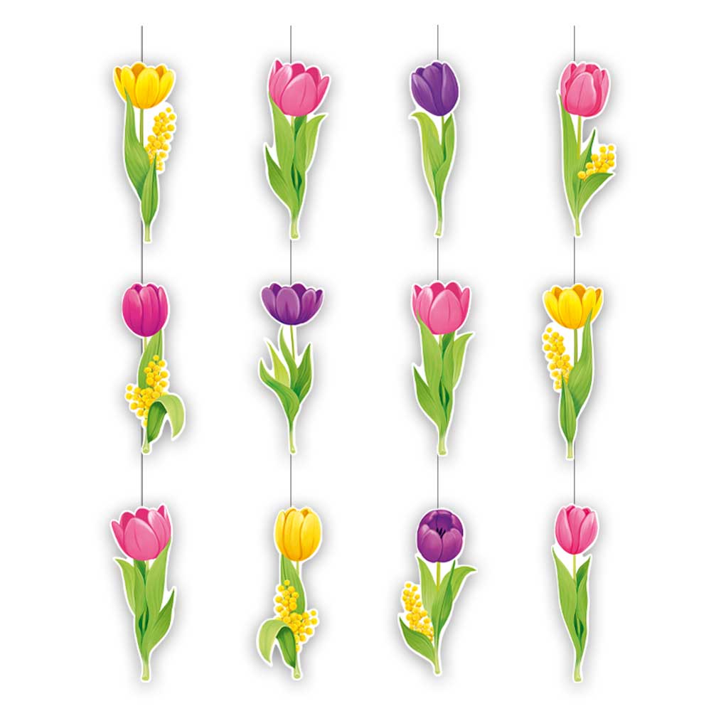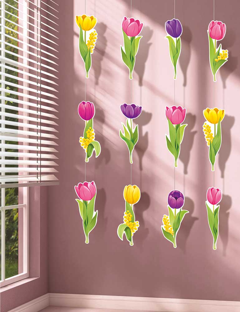 Гирлянда декоративная на шнуре представляет собой набор из 4 вертикальных подвесок с фигурной вырубкой элементов в виде разноцветных тюльпанов с листьями и соцветиями мимозы. Элементы изготовлены из мелованной бумаги оптимальной плотности, что обеспечивает достаточную жесткость, устойчивость к деформации и аккуратный внешний вид при многократном использовании в помещениях. Общая длина готового изделия составляет 1700 мм при ширине композиции около 1200 мм, длина шнура 5100 мм позволяет свободно распределять подвески по стене, витрине, оконному или дверному проему, а также формировать более сложные композиции при серийной выкладке в торговых и образовательных пространствах. В наборе 4 элемента, каждый из которых закрепляется на шнуре с равномерным шагом, что упрощает монтаж и сокращает время подготовки площадки к мероприятию. Конструкция рассчитана на использование в интерьере, удобна для транспортировки и хранения: плоские бумажные детали не занимают много места, не требуют специальных условий, достаточно защитить их от влаги и сильных механических нагрузок. Гирлянда подходит для сезонного оформления залов, офисов, магазинов, детских учреждений, фотозон и домашних праздников, особенно в весенний период и к тематическим датам. Нейтральный по содержанию, без текста дизайн облегчает интеграцию изделия в существующие концепции оформления и делает его универсальной позицией для оптового ассортимента. В упаковке 1.