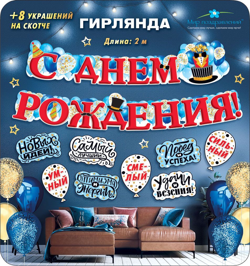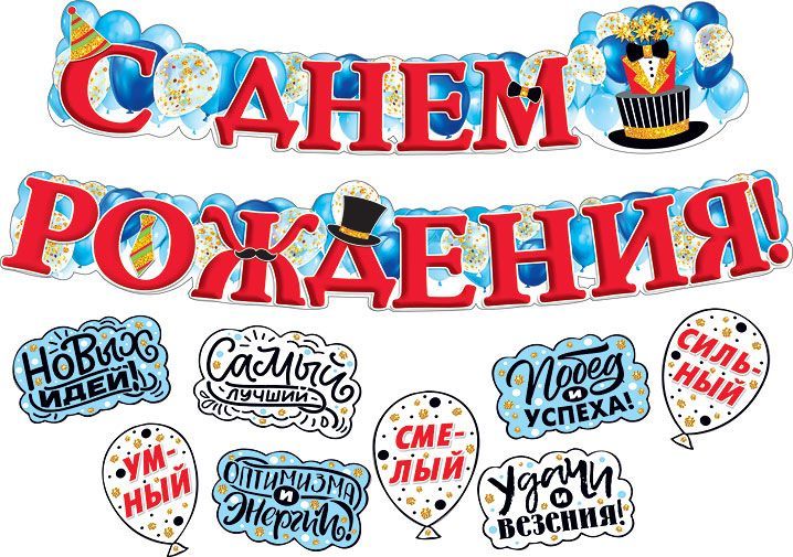 Самый весёлый и замечательный праздник должен быть ярким и оставить в памяти незабываемые впечатления! Эта гирлянда дополнена отдельными элементами с лучшими пожеланиями и комплиментами, которые будут продолжать радовать и вдохновлять именинника ещё много-много дней после торжества!