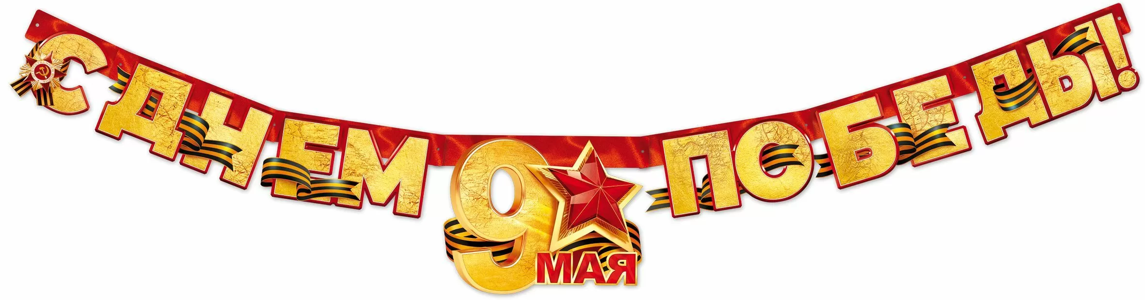 Гирлянда украшена большой цифрой 9 и поздравительной надписью. Яркий дизайн с георгиевской лентой подчеркнет особый дух торжества. Декор украсит любое пространство: актовый зал, класс, группу в садике, офис или гостиную дома. Отличный вариант для оформления сцены или тематической фотозоны!