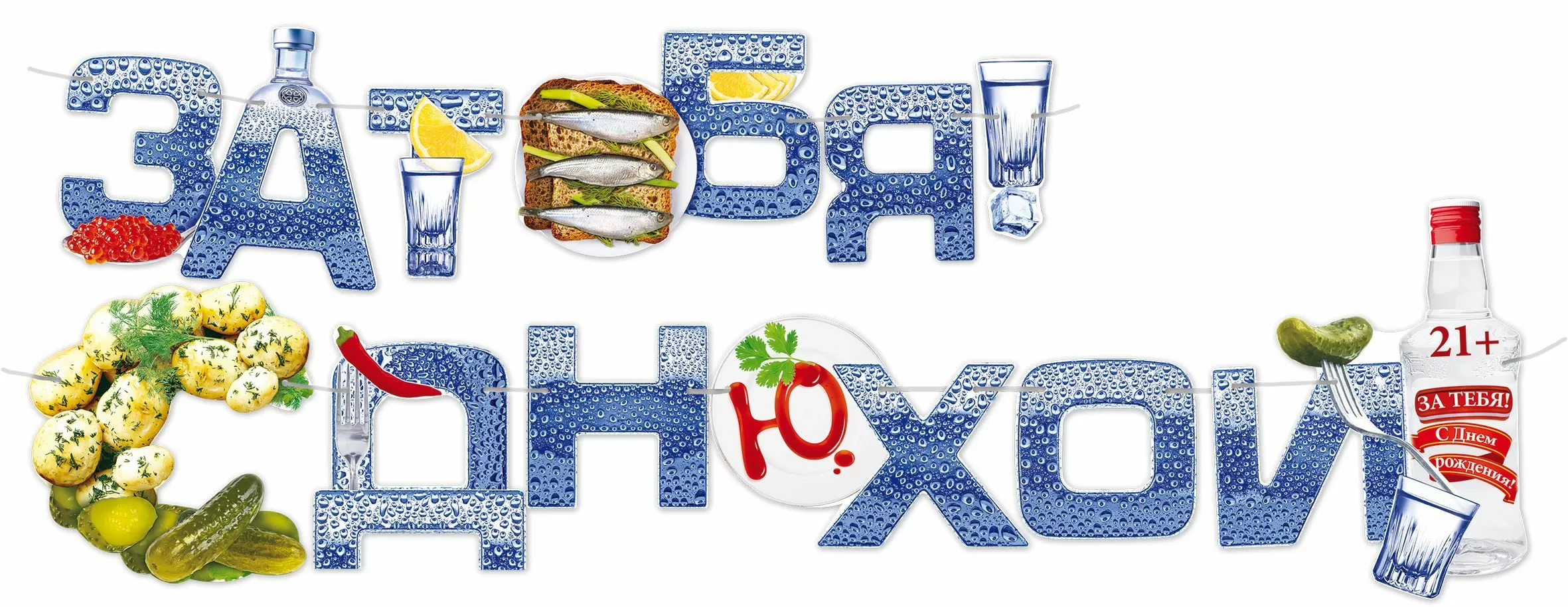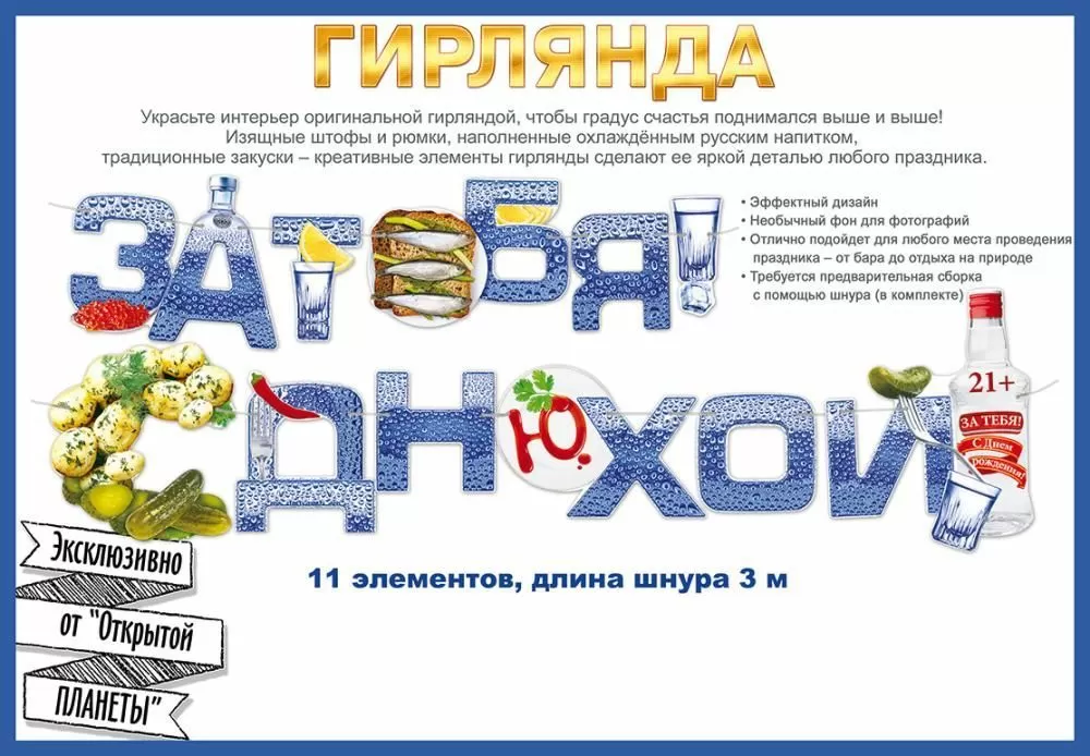 Гирлянда для эффектного поздравления поможет оформить интерьер и устроить незабываемое торжество! Креативный дизайн гирлянды прекрасно дополнит любое застолье или вечеринку. Необычная идея и реалистичное исполнение – праздник будет ярким!