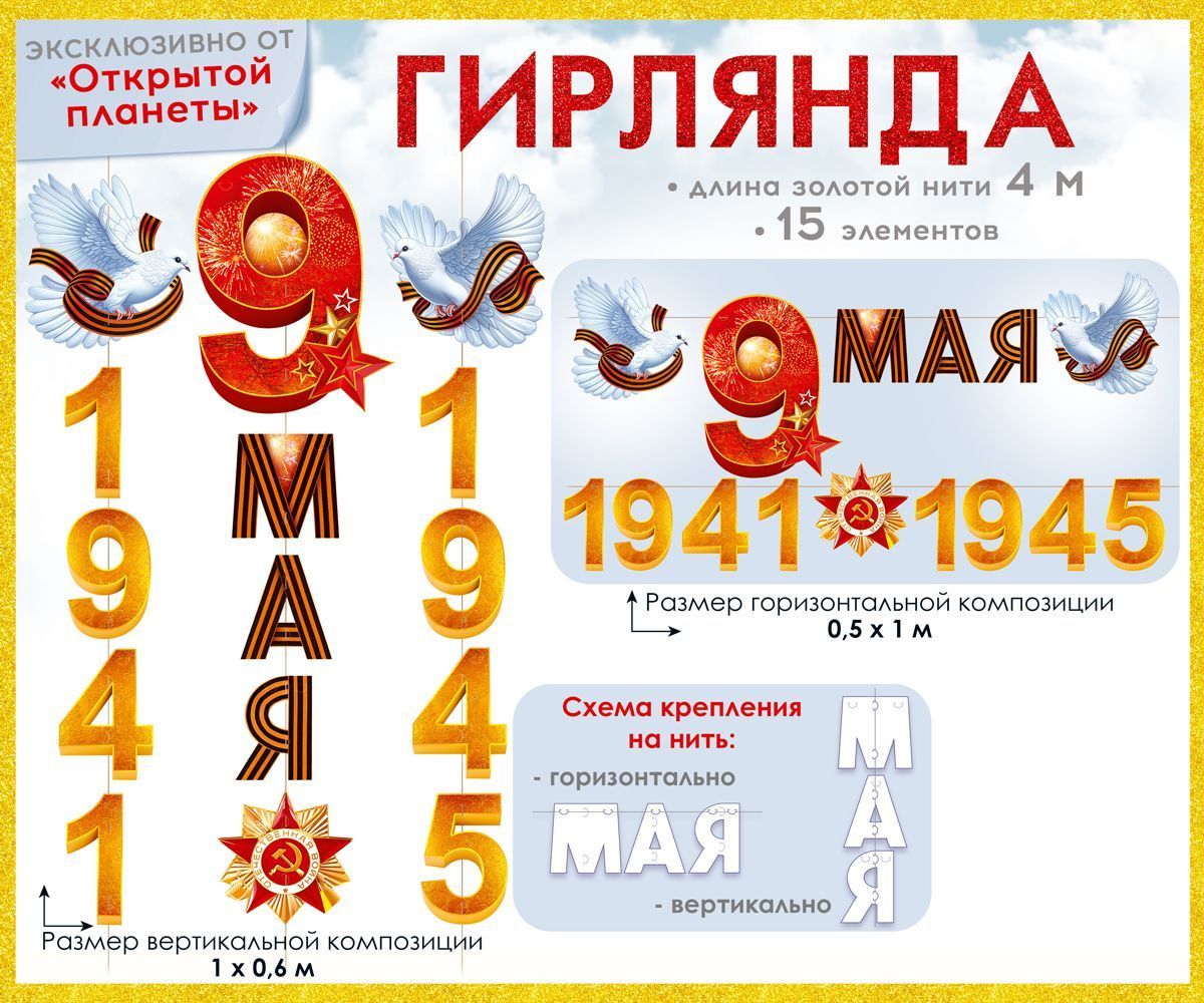 Гирлянда «9 мая! 1941-1945» (орден и голуби с георгиевской лентой)