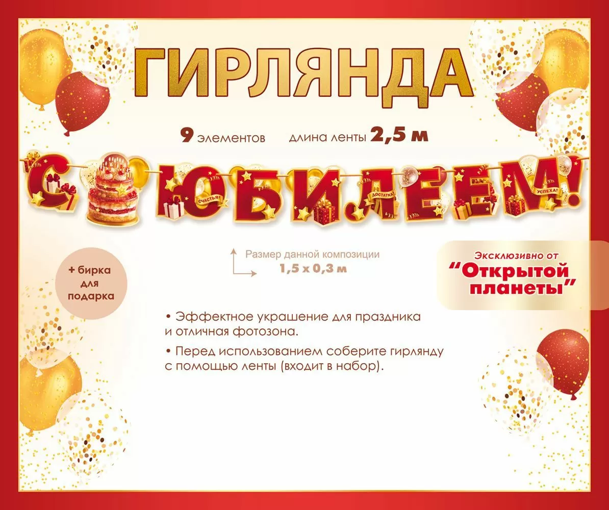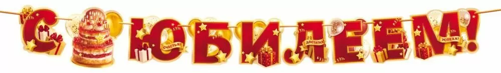 Гирлянда «С Юбилеем!» (торт, подарки, воздушные шары)