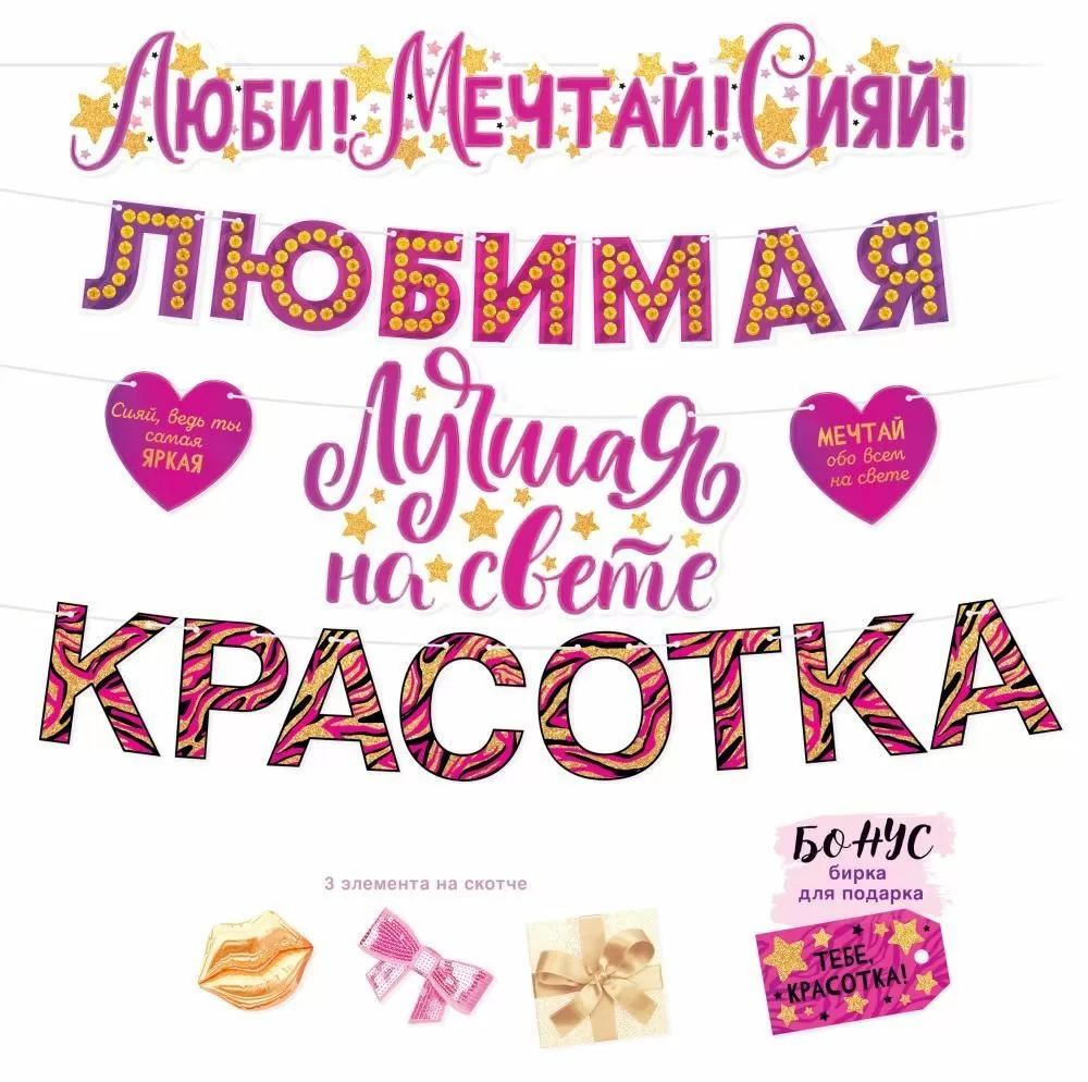 Стильная, яркая и очень креативная гирлянда поможет украсить интерьер и подарить любимой красотке идеальные поздравления и море положительных эмоций. Отлично подходит для любого интерьера и для любого праздника! Устройте своей любимой настоящий праздник, подарите праздичные эмоции. Это может быть вечеринка или день рождения, юбилей, 8 Марта, годовщина, веселый девичник или даже День святого Валентина. Бумажная креативная надпись – еще и отличная фотозона. Может использоваться для фотосессии, поскольку ее композиция смотрится очень эффектно: яркие буквы, сердечки, волшебные цвета. Для кого такой романтичный декор на стену или в комнату? Для дочери, для подруги, для девушки – в общем, для любой девочки, сколько бы лет ей не было!