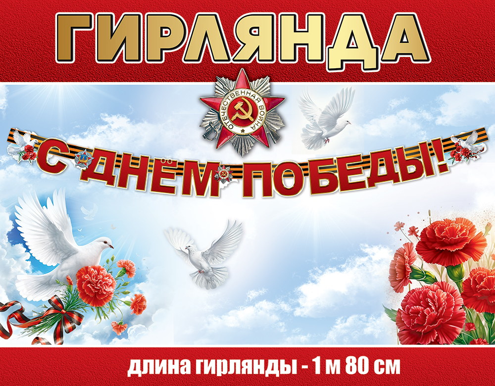 Гирлянда предназначена для оформления помещений и витрин к празднованию Дня Победы и ориентирована на использование в оптовых и розничных закупках для школ, учреждений, торговых сетей и корпоративных мероприятий. Изделие выполнено из плотного картона с фигурной вырубкой элементов, что обеспечивает аккуратный контур букв и декоративных деталей и придает композиции законченный внешний вид. Длина готового изделия составляет 1 800 мм, ширина по максимальному элементу — 136 мм, что позволяет использовать гирлянду как самостоятельный акцент в стандартных классных комнатах, кабинетах, коридорах и торговых залах, а также комбинировать ее с другими элементами праздничного декора. Конструкция на пикколо и на подложке обеспечивает удобство транспортировки и выкладки: гирлянда поставляется в плоском виде, не деформируется при складском хранении, подходит для стеллажного и подвесного мерчандайзинга. Поверхность оформлена полноцветной печатью с применением глянцевого УФ-лака, который повышает износостойкость, устойчивость к истиранию и выцветанию при искусственном освещении, а также облегчает сухую очистку от пыли. Визуально гирлянда содержит крупную надпись «С ДНЁМ ПОБЕДЫ!» на фоне символики Дня Победы, гвоздик, голубей и георгиевской ленты, что делает изделие понятным по назначению без дополнительных пояснений и позволяет использовать его в официальных и полуофициальных пространствах. Формат длиной 1,5–1,99 м удобен для серийных оформительских решений: гирлянды можно устанавливать по одной или последовательно, создавая непрерывную линию декора вдоль стен, сцены или витрин. Материал и отделка рассчитаны на многократное сезонное применение при аккуратном обращении, что важно для организаций, формирующих постоянный фонд праздничного оформления. В упаковке — 1, что упрощает точный расчет необходимого количества для партии поставки и планирования бюджета на декорирование объектов различной площади.
