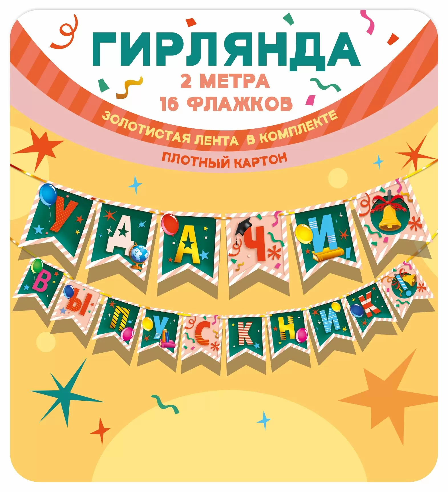 Гирлянда «Удачи, выпускник!» (шрифтовая композиция и колокольчик)