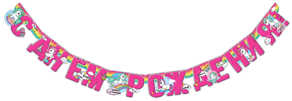 Гирлянда картонная длиной 1800 мм и шириной 136 мм предназначена для оформления детских праздников и тематических мероприятий, в первую очередь дней рождения. Изделие выполнено из плотного картона с фигурной вырубкой элементов, что обеспечивает аккуратный контур букв и декоративных деталей и позволяет использовать гирлянду как самостоятельный элемент оформления помещения или в составе комплексного декора. Конструкция на пикколо и на подложке обеспечивает ровное натяжение по всей длине, удобство монтажа и демонтажа, а также снижает риск деформации при хранении и транспортировке, что важно для оптовых поставок и многократного оборота товара. Поверхность оформлена полноцветной печатью с изображением единорогов и радужного фона, сверху нанесён глянцевый УФ-лак, повышающий стойкость к истиранию, выцветанию и кратковременному воздействию влаги, за счёт чего изделие сохраняет внешний вид при повторном использовании. Отделка подчёркивает яркость красок и делает гирлянду заметной в зале, на детском утреннике, домашней вечеринке или в кафе. Размер и формат позволяют размещать изделие над праздничным столом, у фотозоны, на стене или в витринном оформлении. Для розничного покупателя гирлянда удобна в применении: лёгкий картон не создаёт нагрузки на крепления, изделие компактно складывается, не занимает много места при хранении и подходит для декора стандартных жилых и общественных помещений. Для оптовых клиентов важны стабильные параметры: длина в диапазоне 1,5–1,99 м, единый тип картона, повторяемость цветопередачи и качества лакирования в партии, что облегчает планирование ассортимента и комбинирование гирлянды с другой праздничной продукцией в единой серии. Количество в упаковке: 1.