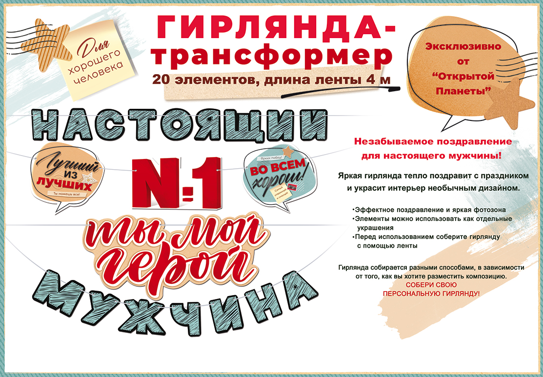 Гирлянда "Ты №1 Ты мой герой! Настоящий мужчина"