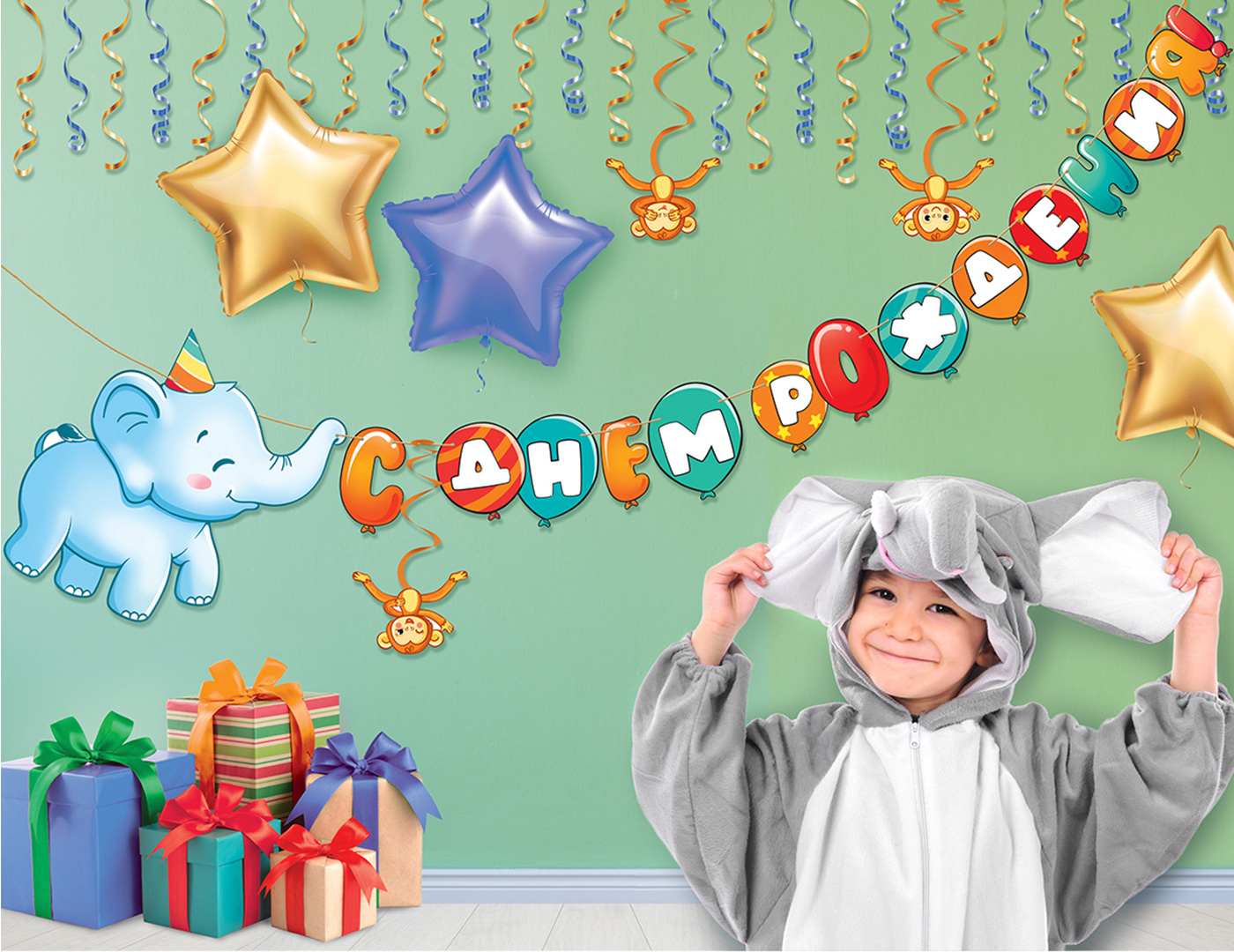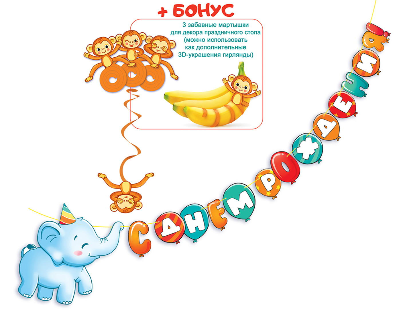 Гирлянда "С Днем рождения!" Слоник