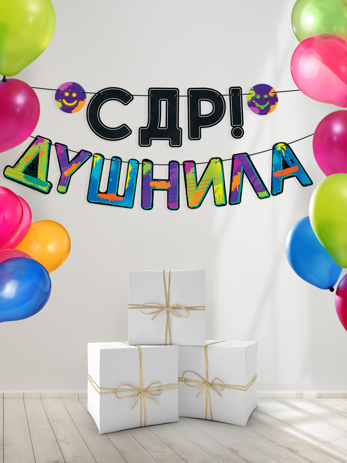 Гирлянда представляет собой набор из 13 отдельных картонных элементов с фигурной вырубкой, нанизанных на шнур длиной 3 000 мм. Длина готового изделия составляет 3 000 мм, максимальная ширина элементов — 201 мм, что позволяет точно планировать размещение декора при оформлении витрин, залов и фотозон. Конструкция на ленте обеспечивает равномерное распределение нагрузки и удобство монтажа: элементы можно сдвигать по шнуру, подстраивая интервал под конкретную площадку. Картон достаточной плотности подходит для краткосрочного и эпизодического использования в помещениях, сохраняет форму при стандартных условиях хранения и транспортировки, не деформируется при аккуратном креплении на скотч, кнопки или декоративные держатели. Изделие поставляется в количестве 1, что удобно для поштучного учета на складе и формирования розничного ассортимента по позициям. Отделка отсутствует, поверхность элементов матовая, без лакировки, что снижает риск бликов на фотографиях и делает гирлянду удобной для оформления фотозон и видеосъёмки. Нейтральная по конструкции и формату гирлянда может быть включена в базовый ассортимент сезонных и подарочных товаров, сочетаться с бумажными плакатами, настольными декорациями и одноразовой посудой. Для розничного покупателя изделие подходит как готовое решение для украшения комнаты, офиса или небольшого зала к дню рождения; длины шнура достаточно для оформления стены, дверного проёма или зоны над праздничным столом. Компактная упаковка облегчает хранение остатков и транспортировку оптовыми партиями, снижая риск повреждений при перемещении между складами и торговыми точками. Гирлянда не содержит текста внутри дополнительных элементов, поэтому основное визуальное восприятие формируется за счёт формы и цветового решения букв и знаков.