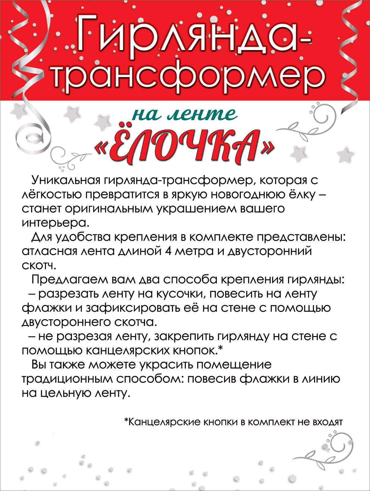Гирлянда на ленте «Ёлочка» представляет собой набор из 22 картонных элементов с фигурной вырубкой, собранных на атласной ленте длиной 4 000 мм. Готовое изделие имеет длину 4 000 мм и ширину 167 мм, что позволяет использовать его как линейное настенное оформление либо выстраивать в виде силуэта ёлки на плоской поверхности. Элементы изготовлены из плотного картона, устойчивого к деформации при многократной развешивании и транспортировке, изображение двустороннее, что делает гирлянду удобной для размещения в витринах, торговых залах и проходных помещениях, где декор просматривается с обеих сторон. Конструкция поставляется на подложке, что упрощает складское хранение и инвентаризацию при оптовых поставках, а также снижает риск повреждения краёв и заломов при перевозке. В комплект входит скотч для крепления и атласная лента, благодаря чему не требуется дополнительная фурнитура и сокращается время монтажа при оформлении больших площадей. Гирлянда не содержит текстовых надписей, поэтому подходит для использования в смешанных товарных выкладках, в детских и образовательных учреждениях, офисах и жилых интерьерах, не ограничивая покупателя языковыми и тематическими рамками. Нейтральная новогодняя графика с ёлочными игрушками и зимними мотивами позволяет сочетать изделие с другими сезонными украшениями в единой коллекции. Формат длиной от 4 м удобен для типовых задач оформления: декорирования витрин, стен, ресепшен-зон, фотозон, входных групп и небольших залов без необходимости стыковки нескольких изделий. Одно изделие в упаковке облегчает точный расчёт количества при оптовой закупке и планировании ассортимента по площадям оформления.
