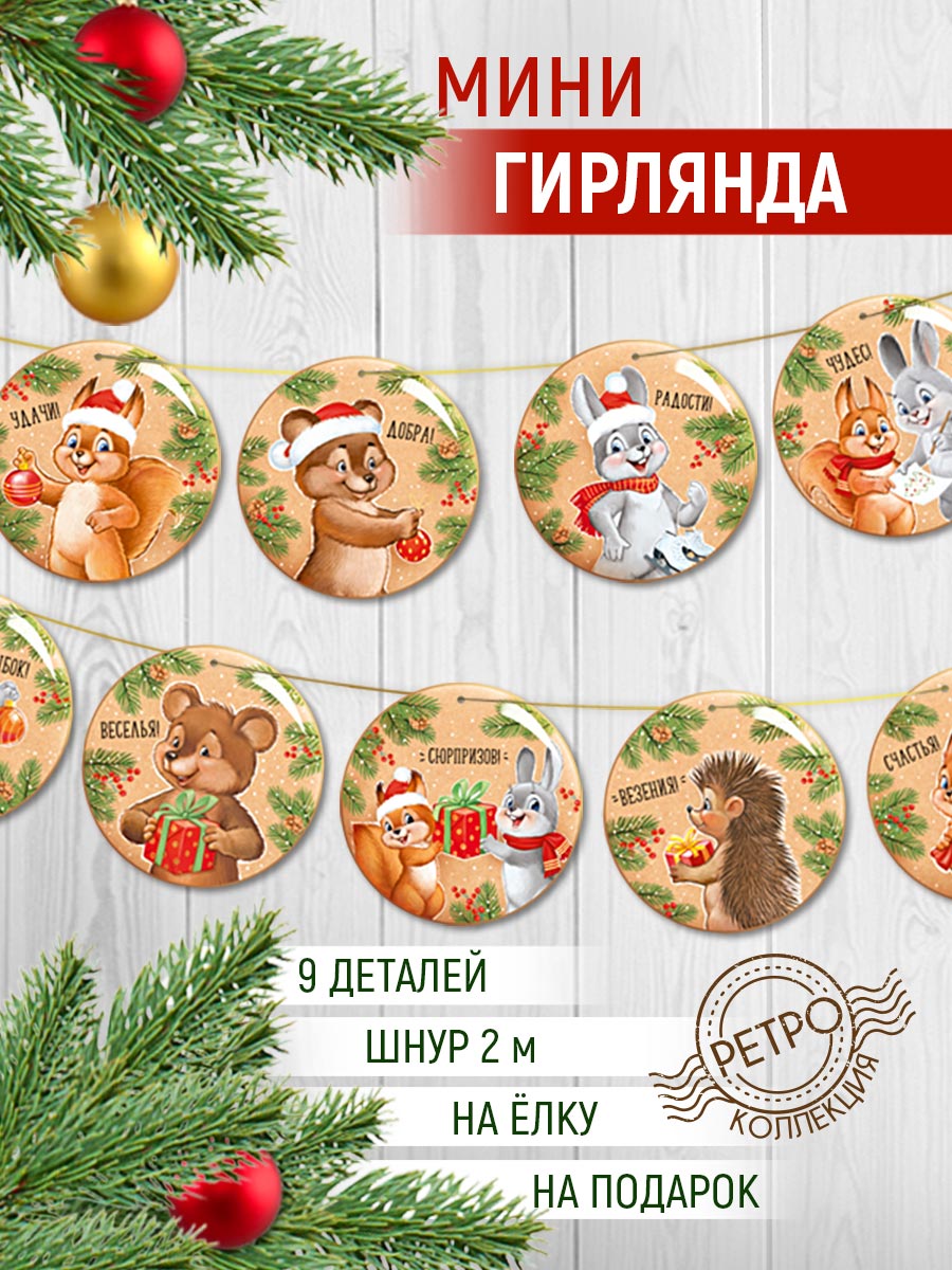 Гирлянда декоративная из дизайнерского картона предназначена для оформления новогодних витрин, торговых залов, детских учреждений и домашних интерьеров. Изделие состоит из 9 круглых элементов с полноцветными иллюстрациями в «ретро»-стилистике: лесные животные в новогодних шапках, елочные ветви, подарки и лаконичные праздничные подписи, хорошо читаемые с расстояния. Диаметр элементов подобран так, чтобы обеспечить заметность изображения при настенном и оконном размещении, при этом общая ширина готового изделия 96 мм и длина 2 000 мм позволяют использовать гирлянду как самостоятельный акцент или как часть комплексного декора. Плотный дизайнерский картон сохраняет форму, устойчив к деформации при подвесе и не просвечивает на свету, что важно при размещении на витринах и стеклянных перегородках. Поверхность рассчитана на многократное использование в течение нескольких сезонов при аккуратном хранении в плоском виде. В комплект входит шнур длиной 2 000 мм, подобранный по цвету к оформлению, что упрощает монтаж и позволяет быстро собрать гирлянду на объекте без дополнительных расходных материалов; конструкция элементов предусматривает продевание шнура, что дает возможность варьировать расстояние между деталями под конкретную зону размещения. Небольшой общий вес изделия снижает нагрузку на крепления и облегчает транспортировку крупной партии: гирлянды компактно упаковываются, занимают минимум места на складе и в торговом зале, удобны для выкладки в прикассовой зоне. Формат подходит для розничной продажи как сезонный сувенир: гирлянда может использоваться для украшения елки, детской комнаты, небольшого офиса или подарочного набора. Количество в упаковке — 1.