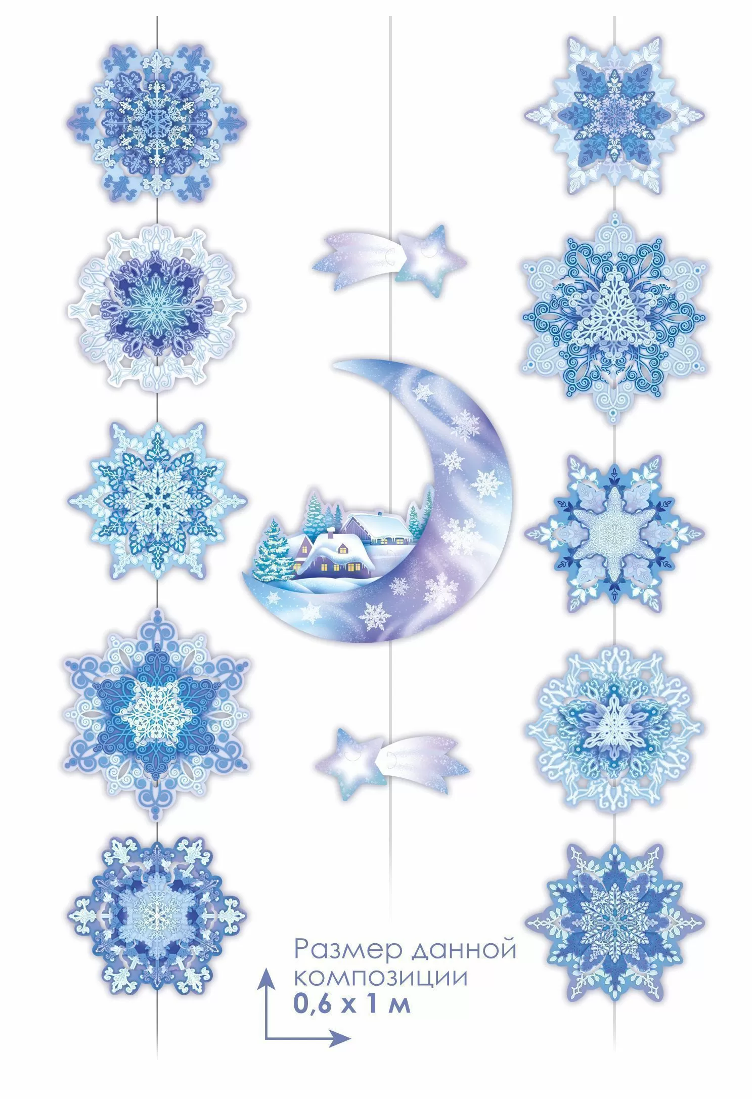 Стильная гирлянда с ажурными снежинками и волшебной луной привнесет атмосферу зимней сказки в интерьер. Декор можно использовать в будни и на самые любимые зимние праздники — Новый год и Рождество. Украшение подойдет для дома, детского сада, школы и офиса. С его помощью можно украсить витрину магазина или создать потрясающую фотозону.