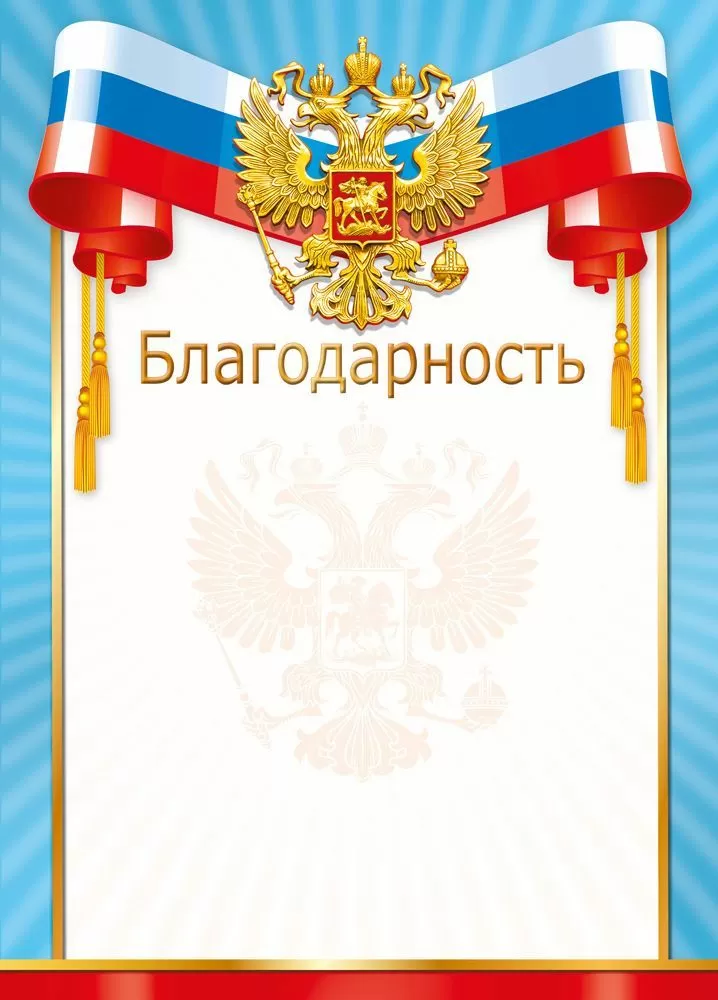 Бланк «Благодарность» формата А4 предназначен для оформления официальных и корпоративных поощрений в учреждениях, организациях и учебных заведениях. Изделие изготовлено из мелованной бумаги плотностью, оптимальной для офисной печати и ручного письма, что обеспечивает четкое воспроизведение текста, отсутствие просвечивания и стабильную геометрию листа при хранении и транспортировке. Готовый размер 295 × 210 мм соответствует стандарту делового документооборота и позволяет использовать бланк с любыми типовыми папками, файлами и рамками. Оформление выполнено в строгом государственно-торжественном стиле: в верхней части размещено изображение двуглавого орла с лентой в цветах флага, по периметру предусмотрена тонкая золотистая рамка, а в центральной зоне оставлено свободное поле под текст благодарности, печати и подписи. Фон центральной части светлый, с малозаметным полупрозрачным изображением герба, что не мешает восприятию напечатанного или написанного от руки текста. Бланк не имеет дополнительной отделки, что упрощает механизированную и струйно-лазерную печать, снижает риск смазывания красок и делает продукцию удобной для массового документооборота. Нейтральный характер оформления без указания конкретного адресата позволяет применять изделие в широком спектре ситуаций: поощрение сотрудников, партнеров, участников мероприятий, учеников и студентов, вручение благодарностей на официальных церемониях, конкурсах и внутрикорпоративных событиях. Плотность и структура бумаги обеспечивают удобство хранения в стопках, коробах и архивных папках без деформации и заломов, что важно при оптовых поставках и длительном складском хранении. В упаковке 20 единиц, что удобно для формирования запасов в организациях, учебных и культурных учреждениях, а также для планирования регулярного использования в рамках годового графика награждений.