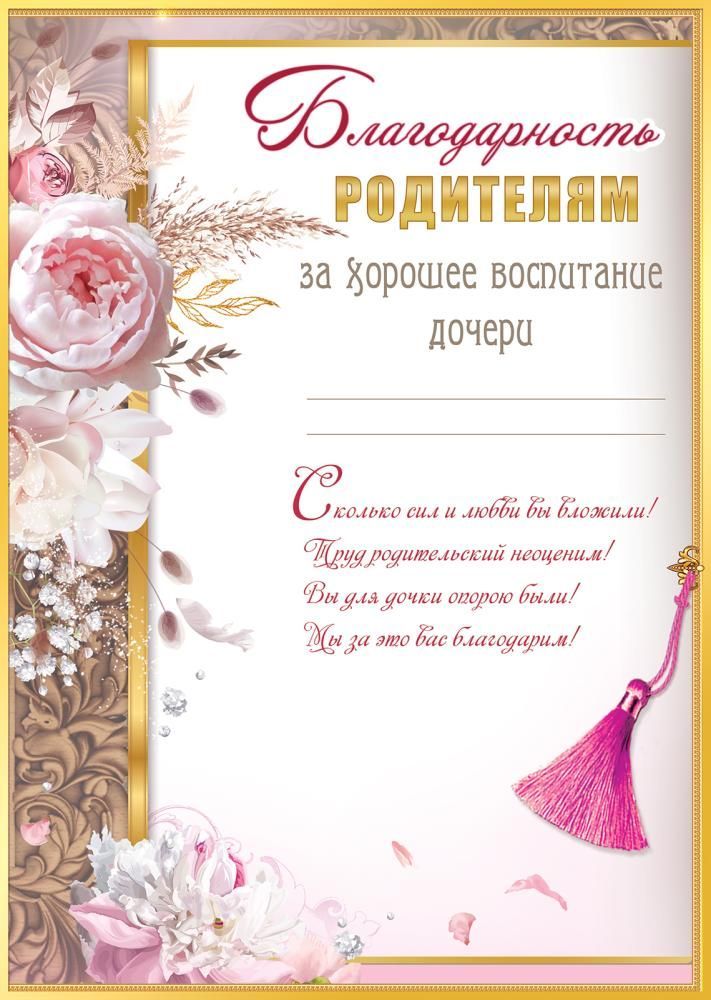 Благодарность родителям за хорошее воспитание дочери