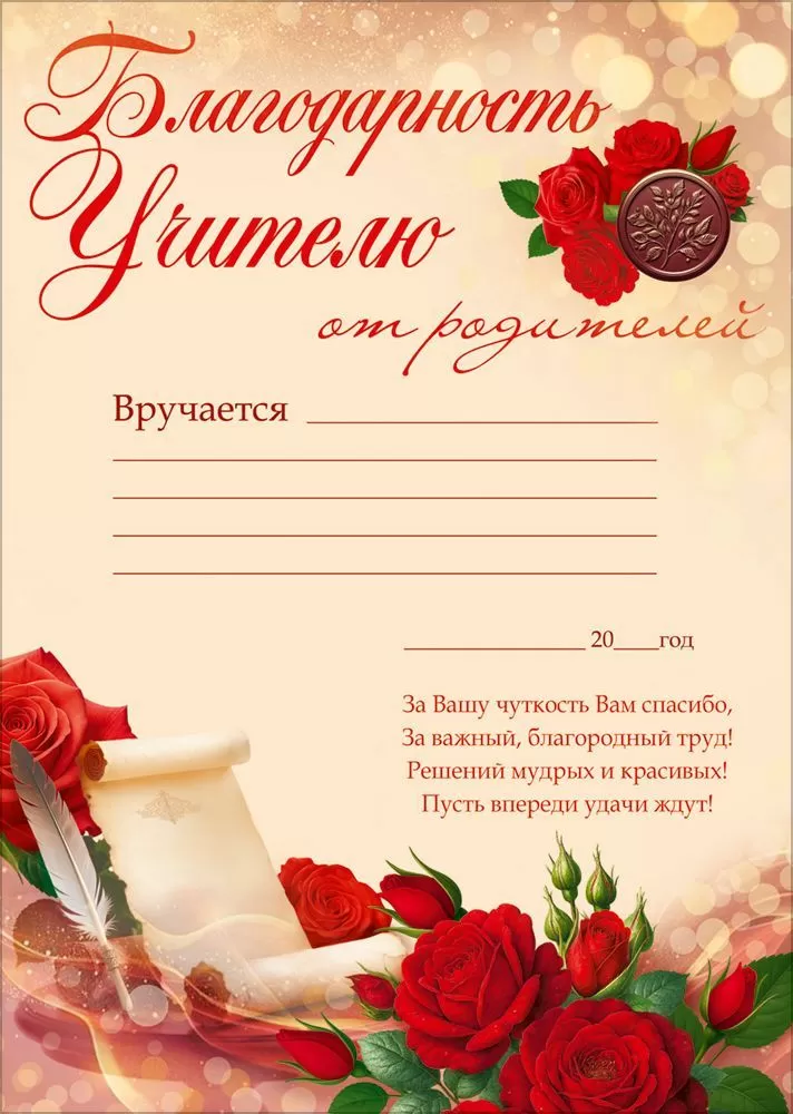 Благодарность учителю от родителей
