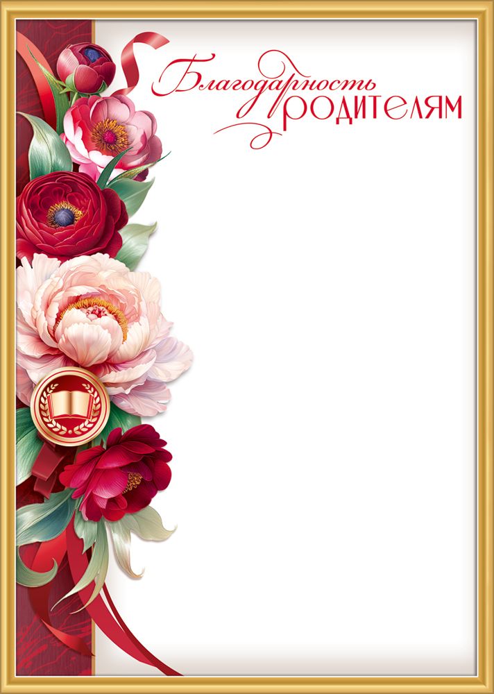Благодарность родителям (медаль с книгой, пионы, ленты)