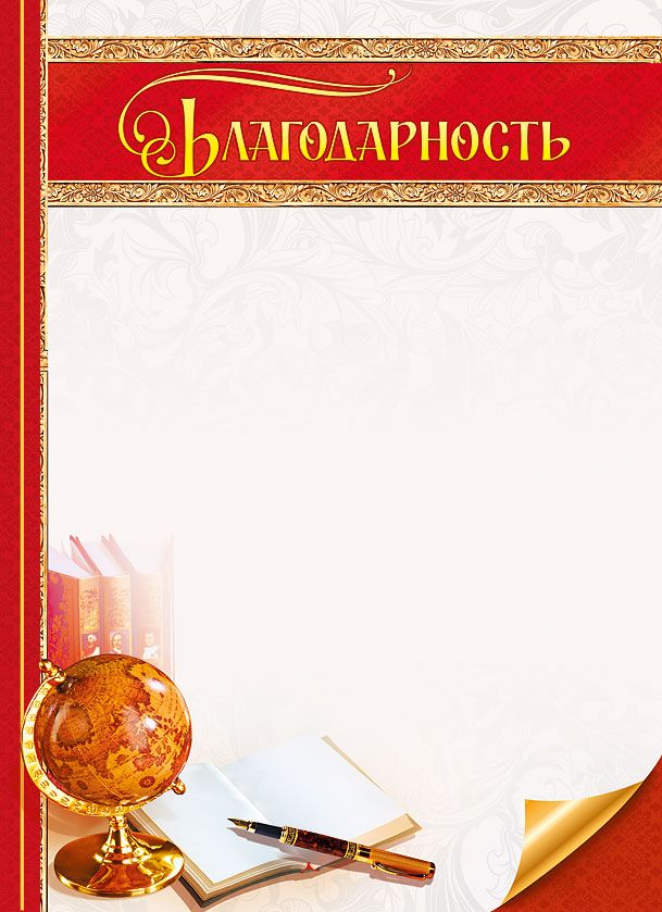 Благодарность формата А5 выполнена из плотного картона и предназначена для оформления поощрений в учебных заведениях, организациях и учреждениях дополнительного образования. Готовое изделие имеет размеры 216 × 155 мм, что обеспечивает совместимость с большинством стандартных файлов и папок для подшивки документов, а также позволяет использовать типовые конверты для вручения и пересылки. Лицевая сторона оформлена декоративной рамкой с красными и золотистыми элементами, в верхней части размещена надпись «Благодарность», нижняя зона дополнена изображениями глобуса, книг и блокнота с ручкой, что визуально связывает бланк с тематикой обучения, развития и деловой активности. Внутри отсутствует текст, предусмотрено свободное поле для самостоятельного нанесения формулировки благодарности, реквизитов организации, подписи и печати; поверхность картона подходит для письма шариковыми, гелевыми и капиллярными ручками, а также для лазерной и струйной печати при корректной настройке оборудования. Картонная основа обеспечивает достаточную жесткость, устойчивость к заломам при аккуратной транспортировке и хранении, сохраняет форму при размещении в папках, на стендах и в прозрачных файлах. Оформление выдержано в универсальной деловой стилистике, что позволяет использовать данный бланк как для поощрения педагогических и административных работников, так и для награждения учащихся, партнеров и клиентов. Конструкция изделия удобна для массового применения: бланки компактно укладываются в стопы, не занимают много места на складе, не требуют специальных условий хранения, пригодны для длительного складирования без потери внешнего вида при соблюдении стандартного температурно-влажностного режима. В упаковке 10 штук, что удобно для планирования закупок, формирования текущего запаса наградной продукции и оптимизации затрат при проведении серийных мероприятий, конкурсов, отчетных собраний и других официальных событий.