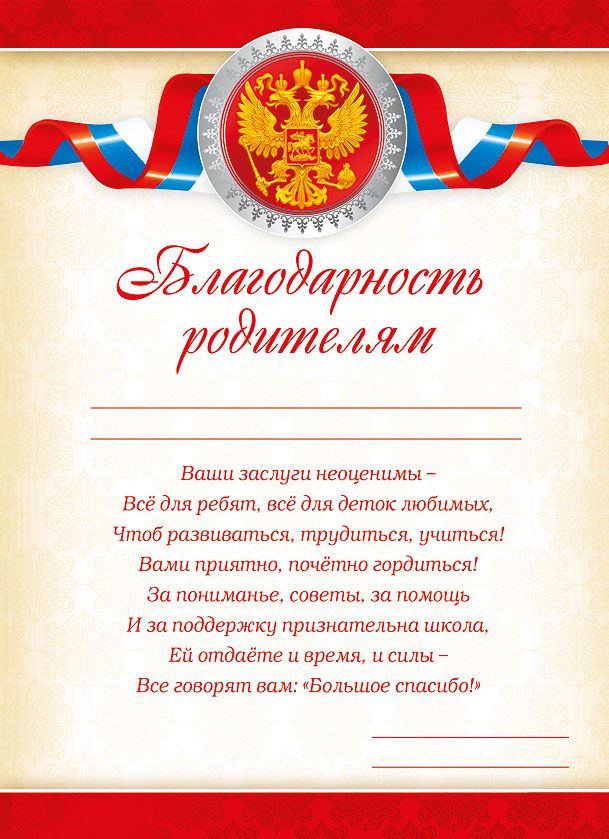 Благодарность родителям (Российская символика)
