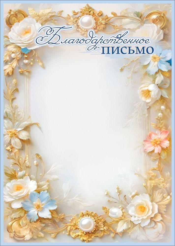 Благодарственное письмо (светлые цветы, золотые узоры)