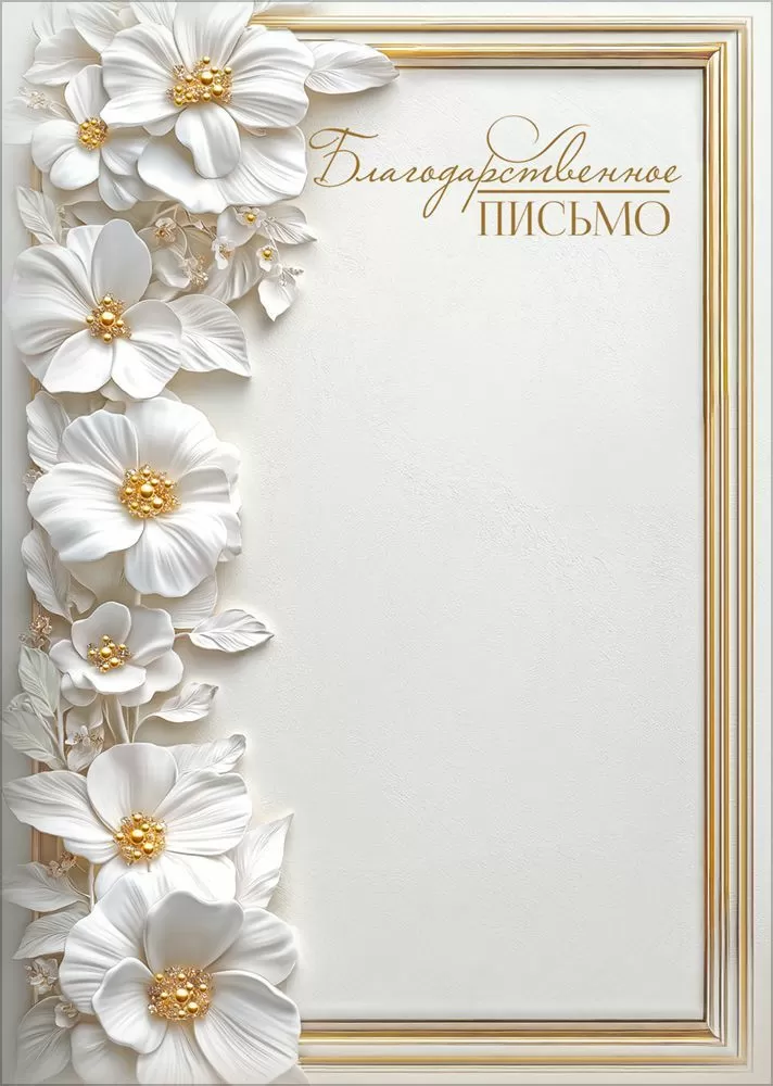 Благодарственное письмо (белые с золотом цветы и рамка)