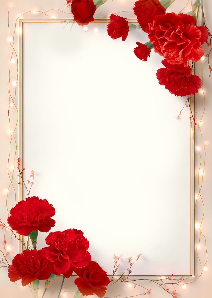 Бланк без надписи с красными гвоздиками и светящейся гирляндой
