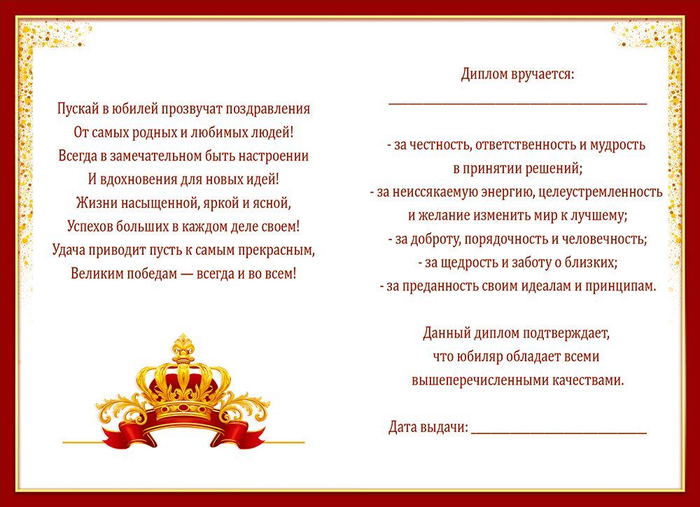 Диплом «Юбиляра» формата А6 изготовлен из плотного картона, что обеспечивает устойчивость изделия к деформации при транспортировке и хранении, а также сохраняет внешний вид при активном использовании на мероприятии. Готовый размер 160 × 110 мм позволяет удобно размещать диплом в стандартных конвертах, папках или на витринных стендах, оптимизируя выкладку и логистику при оптовых поставках. Лицевая сторона оформлена в красно-золотой гамме с крупным заголовком «Диплом Юбиляра» и декоративной короной, что делает назначение изделия однозначно понятным для конечного покупателя и облегчает подбор ассортимента для праздничных отделов. Применена фольга золотая и глянцевая ламинация, за счёт чего поверхность приобретает выраженный блеск, устойчива к истиранию, не выцветает при экспонировании на свету и меньше подвержена появлению заломов при многократном перелистывании. Внутри размещён печатный текст и подсказ для заполнения, что сокращает время подготовки к вручению и снижает нагрузку на персонал при массовых мероприятиях: достаточно внести имя юбиляра, дату и дополнительные данные по усмотрению организаторов. Конструкция диплома рассчитана на единичное или серийное использование в рамках дней рождения, корпоративных юбилеев, торжеств в коллективах и учреждениях; нейтральная формулировка текста подходит для разных возрастных категорий и форматов праздника. Плотный картонный материал сохраняет геометрию изделия при вертикальной демонстрации на подставке или стенде, что важно для оформления фотозон и презентационных зон в торговых точках. Компактный размер упрощает складской учёт, позволяет размещать крупные партии на ограниченной площади и снижает риск повреждений при пересылке. В упаковке 10 штук, что удобно для формирования базового запаса на сезонные распродажи, комплексные закупки к праздничным датам и планирование ассортимента в оптовых и розничных каналах.