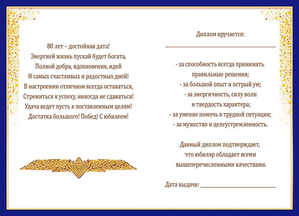 Диплом «80 лет»