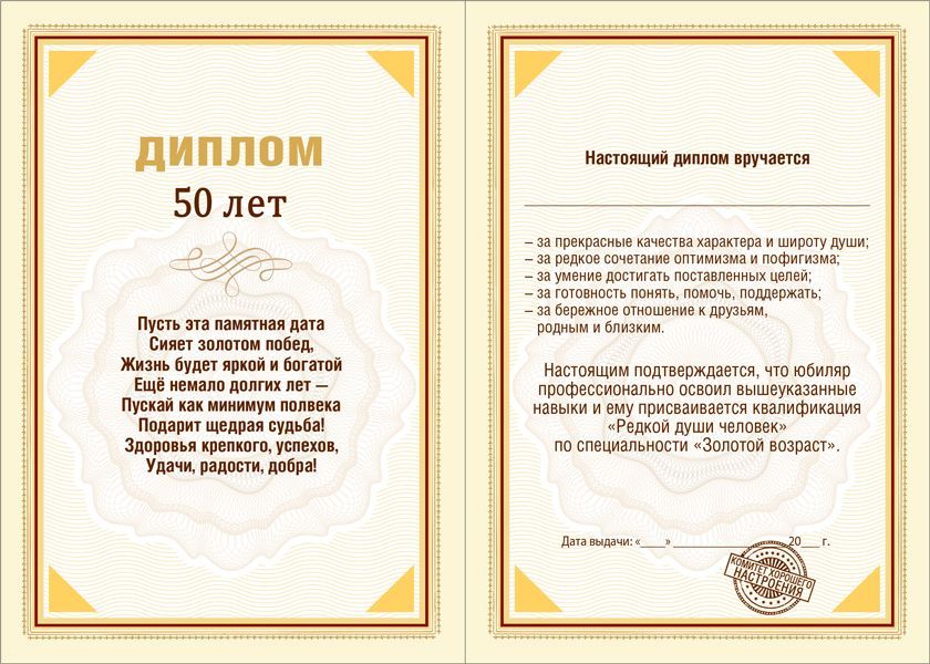 Диплом 50 лет