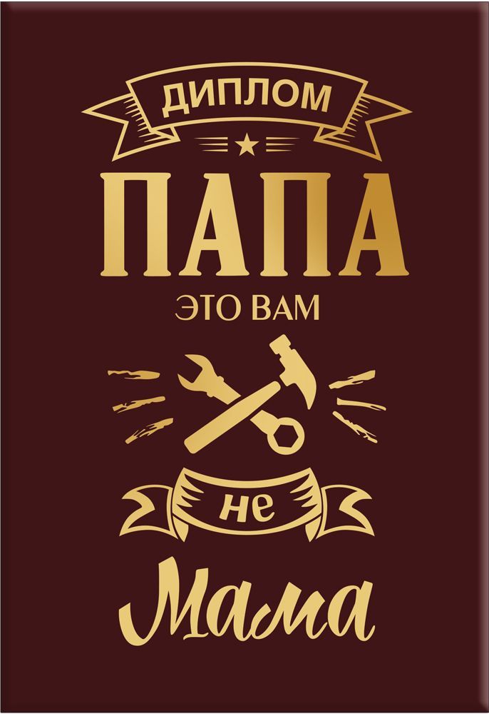 Диплом А6 «Папа – это вам не мама» выполнен из плотного картона и предназначен для оформления в качестве небольшого подарочного знака внимания. Лицевая сторона оформлена в темно-бордовой гамме с крупной надписью золотистого цвета и декоративными элементами в виде инструментов, что подчеркивает тематику диплома как шуточной награды для отца. Печать выполнена с применением глянцевой ламинации и золотой фольги, за счет чего надписи и графика имеют выраженный блеск и устойчивы к истиранию при регулярном использовании и многократном контакте руками. Формат А6 при фактических размерах 160 × 110 мм обеспечивает совместимость с большинством стандартных рамок и настенных карманов, удобен для размещения на рабочем столе, полке или в домашнем интерьере. Картонная основа сохраняет геометрию изделия, не коробится при вертикальном хранении и выдерживает транспортировку в групповой упаковке без деформаций. Внутри предусмотрен текст и подсказ для заполнения, что упрощает индивидуализацию подарка под конкретного получателя и позволяет использовать диплом как готовое решение для поздравления на день рождения, профессиональный праздник, семейное торжество или корпоративное мероприятие. Небольшой формат и ровные края облегчают укладку и учет на складе, позволяют формировать компактные партии при отгрузке и выкладке в торговом зале. Упаковка содержит 10 изделий, что удобно для оптовых закупок, формирования ассортимента сувенирной продукции и планирования сезонных продаж в сегменте подарков и недорогих поощрительных наград.
