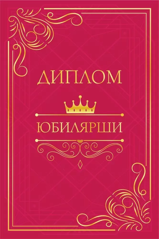 Поздравительный диплом «Юбилярши» с золотой короной и орнаментом на розовом фоне – необычный и запоминающийся подарок для женщины в день юбилея. Шуточный диплом выполнен из прочного картона с глянцевой ламинацией. В оформлении использована золотая фольга, что добавляет торжественности и изысканности поздравлению. Внутри диплома – оригинальный поздравительный текст, разлиновка для заполнения имени адресата и даты выдачи.