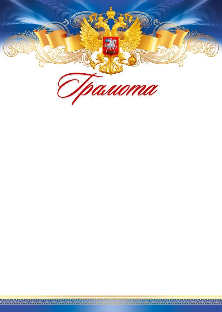 Диплом формата А4 представляет собой готовый к заполнению бланк на мелованной бумаге с полноцветным оформлением лицевой стороны. Размер изделия 295 × 210 мм обеспечивает совместимость с большинством стандартных рамок, файлов и папок для подшивки документов, что удобно при массовой выдаче и последующем хранении. Плотная мелованная бумага дает ровную, гладкую поверхность, подходящую для нанесения текста лазерной или струйной печатью, а также для ручного заполнения шариковыми и гелевыми ручками без растекания чернил. Внутренняя область оставлена без текста, предусмотрено крупное свободное поле для размещения основной информации о награждаемом, реквизитов организации, подписей и печатей; это позволяет адаптировать бланк под различные мероприятия без доработки макета. Оформление верхней части включает декоративную композицию с двуглавым орлом, лентами и надписью «Грамота», нижняя часть дополнена орнаментальной полосой в сине-золотой гамме, за счет чего документ визуально воспринимается как официальный и может использоваться в учебных заведениях, учреждениях дополнительного образования, спортивных секциях, корпоративных программах поощрения и на массовых мероприятиях. Конструкция бланка рассчитана на многотиражное использование: стабильные размеры и однородность материала удобны для автоматизированной резки, печати сериями и упаковки, а также снижают риск замятий при транспортировке и складском хранении. В упаковке 20 изделий, что оптимально для плановых закупок школ, кружков, клубов и компаний, формирующих запас наградной продукции на учебный год, сезон соревнований или серию внутренних конкурсов. Универсальный дизайн позволяет комбинировать данный диплом с различными видами вкладышей, папок и конвертов, поддерживая единый стиль награждения при работе с разными целевыми группами.