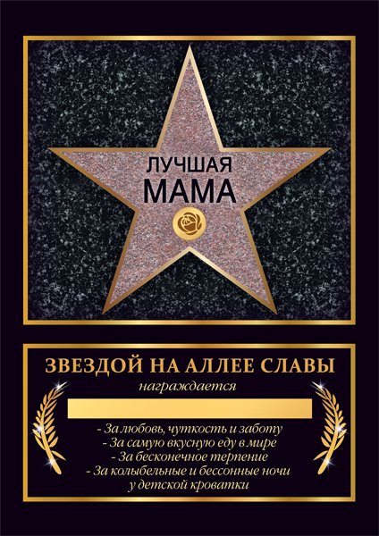 Диплом "Лучшая мама" (Голливуд)